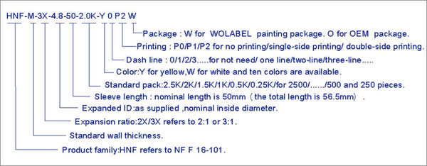 HNF-M manga marcador é um tubo achatado, termoencolhível projetado para identificação de fios e cabos arnês. Ele também pode ser usado para aplicações em que características de perigo contra incêndio limitado são necessárias. O material de zero halogênio juntamente com baixa emissão de fumaça e baixa emissão de fumos tóxicos tornam este produto perfeitamente utilizar em espaços fechados, tais como transporte de massa, naval e instalações industriais. Norma, cumpre NF F16-101, SAE-AS81531, MIL-STD-202f / Método 215J, RoHS etc.